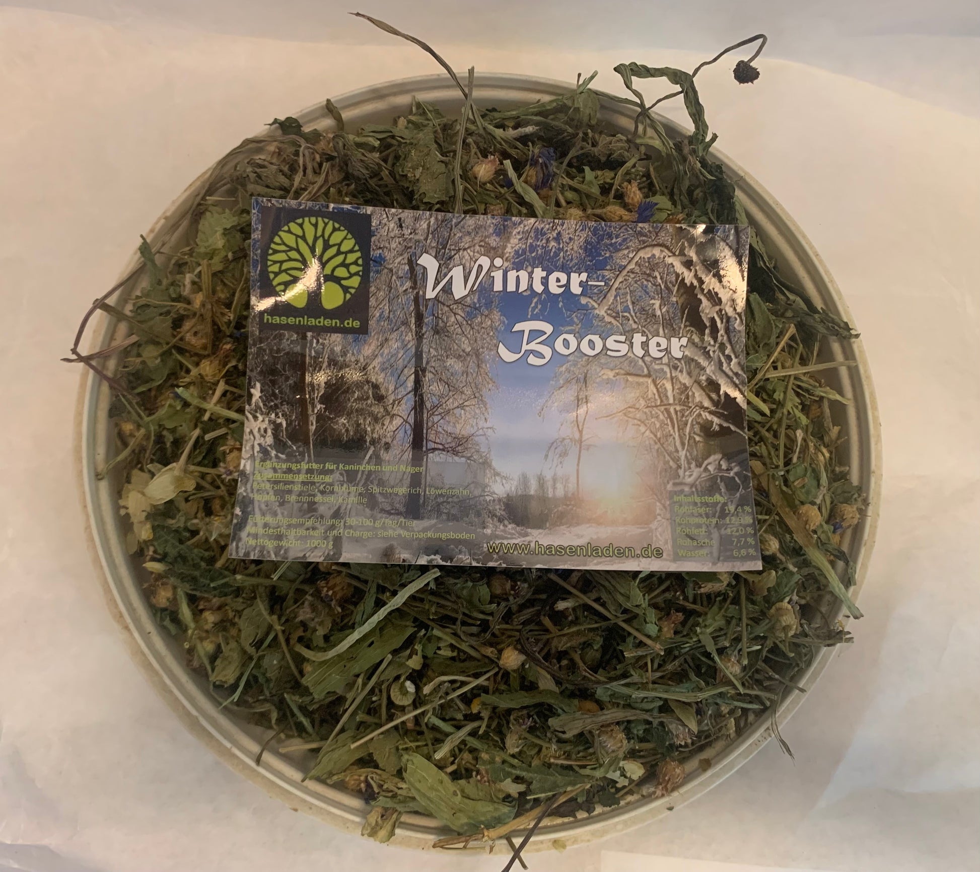 Unser rundum gesunder Winter-Booster Mix, welcher frei von Getreide und Melasse eine artgerechte Ernährung garantiert, verkörpert den Ernährungsplan des Wildkaninchens wie kein anderes Futter. Die Basis aus Petersilienstängel und Löwenzahn, wird mit ausgesuchten Kräutern,Hopfenblüten optimal ergänzt. Die kaninchentypischen Zutaten wirken sich positiv auf den empfindlichen Verdauungstrakt aus, beugen Übergewicht vor und sorgen aufgrund der Struktur für den wichtigen Zahnabrieb und ein stabiles Immunsystem.