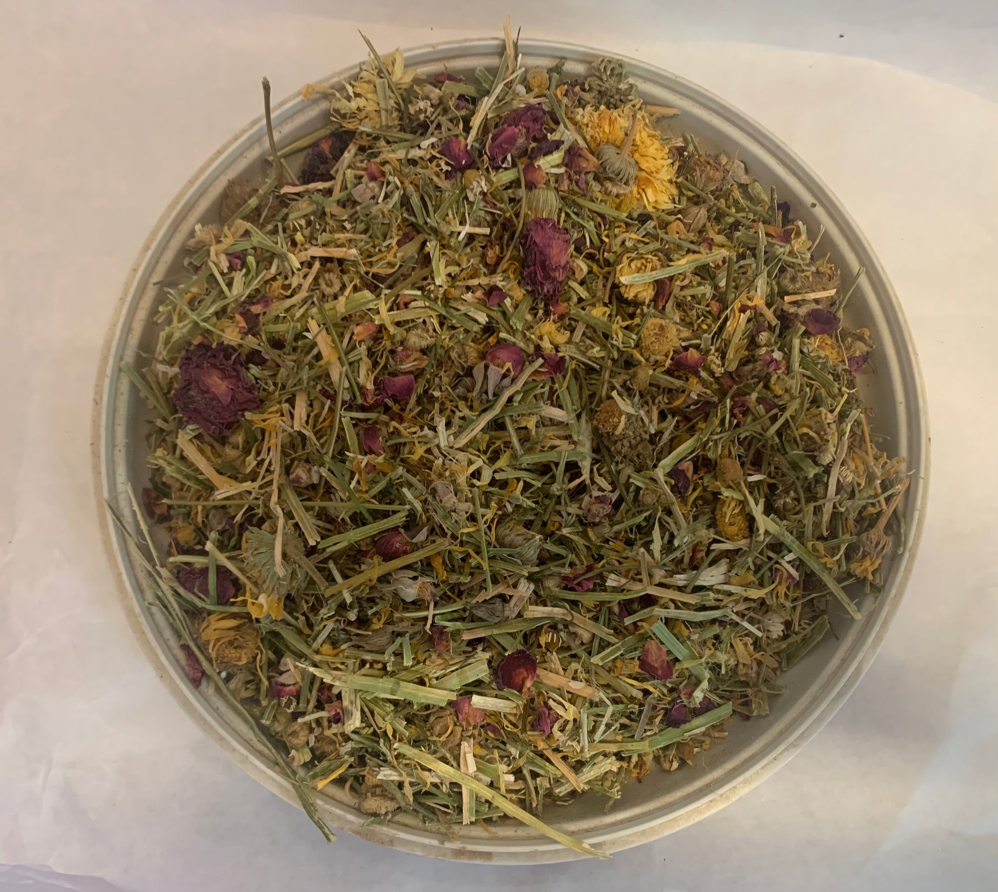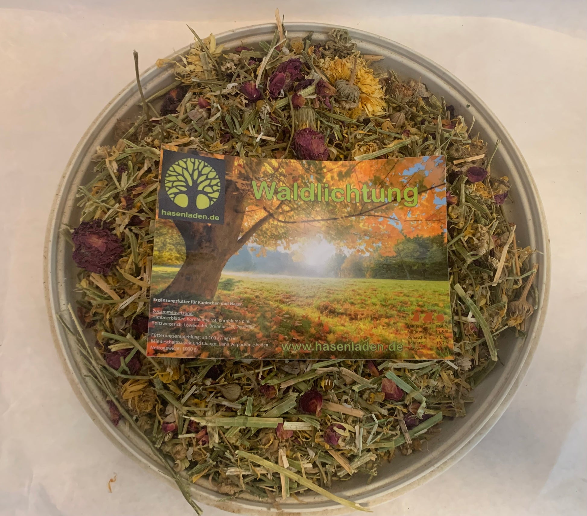 Unsere Waldlichtung beinhaltet eine große Auswahl an heimischen Wiesenkräutern, Gräsern und Blüten - genau dass, was sich Ihr Steh- oder Schlappohr auf einer naturbelassenen Lichtung erwartet.